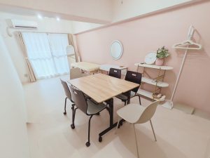 エステ、鍼灸、整体、アロマ、ネイル、パーソナルカラー診断など、多様な施術はもちろん、施術練習や打ち合わせ、会議まで、幅広い用途でご利用いただけます。マンションの一室をまるごと貸切なので、周りを気にせず、施術や作業に集中できます。