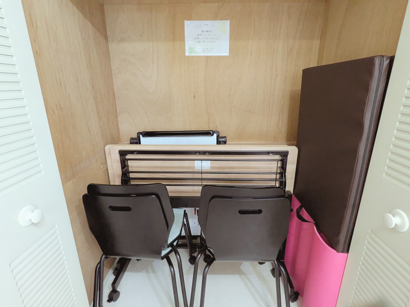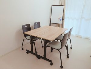 移動式テーブル・椅子・ホワイトボードもご用意ありますのでワーキングスペースとしてもご利用いただけます。